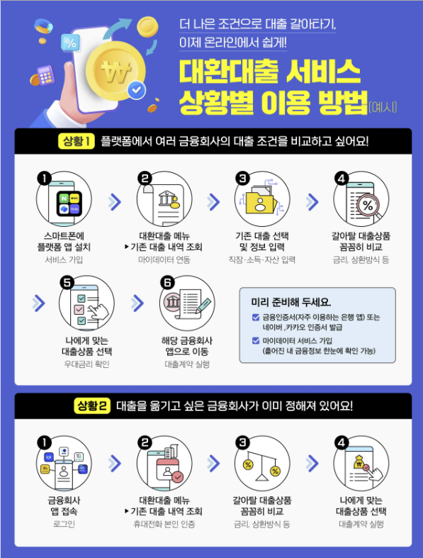 - 대출 갈아타기 과정을 온라인에서 한 번에 진행할 수 있습니다.
