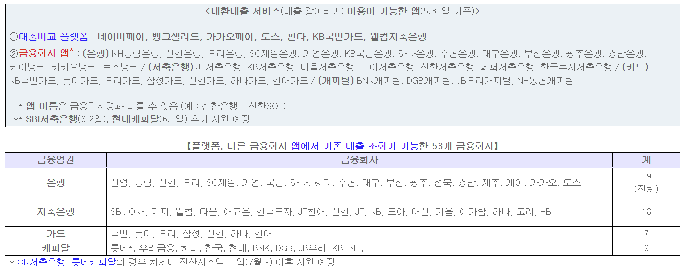 - 기존 대출에서 갈아탈 수 있는 새로운 대출 역시 동일합니다.