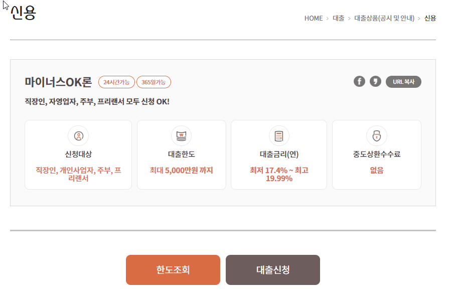 | 대출금리 | 연 17.4% ~ 연 19.99% |