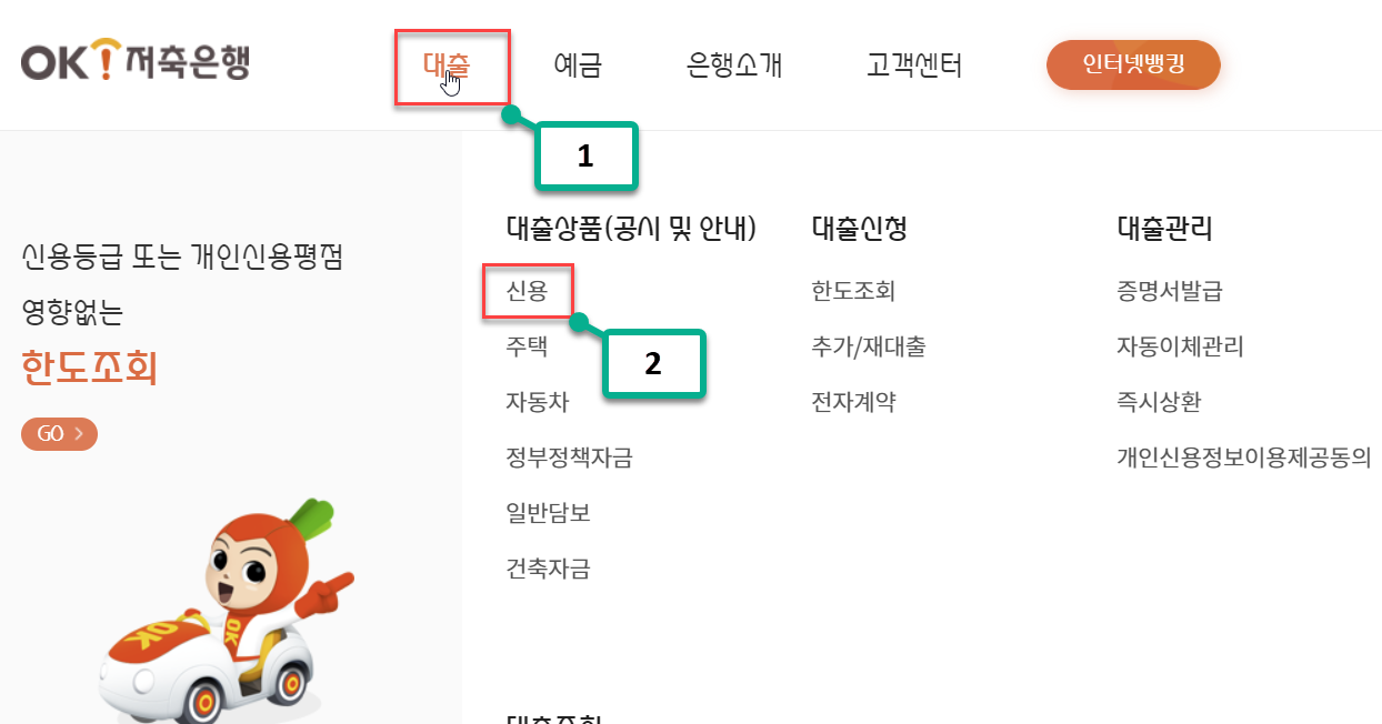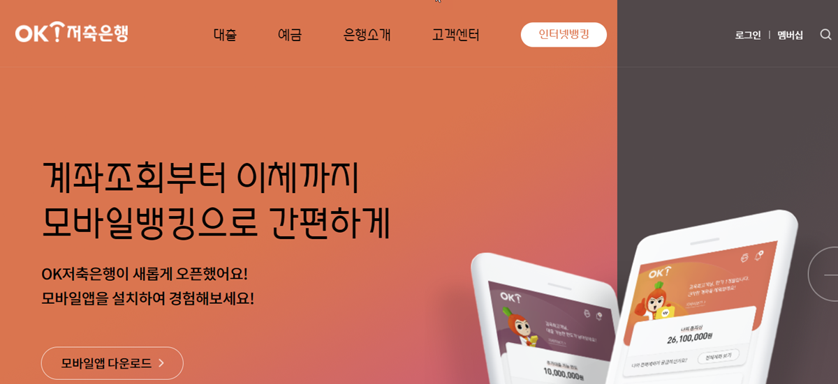 1) OK저축은행 홈페이지 또는 어플 접속 합니다.